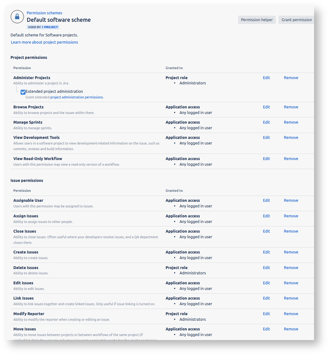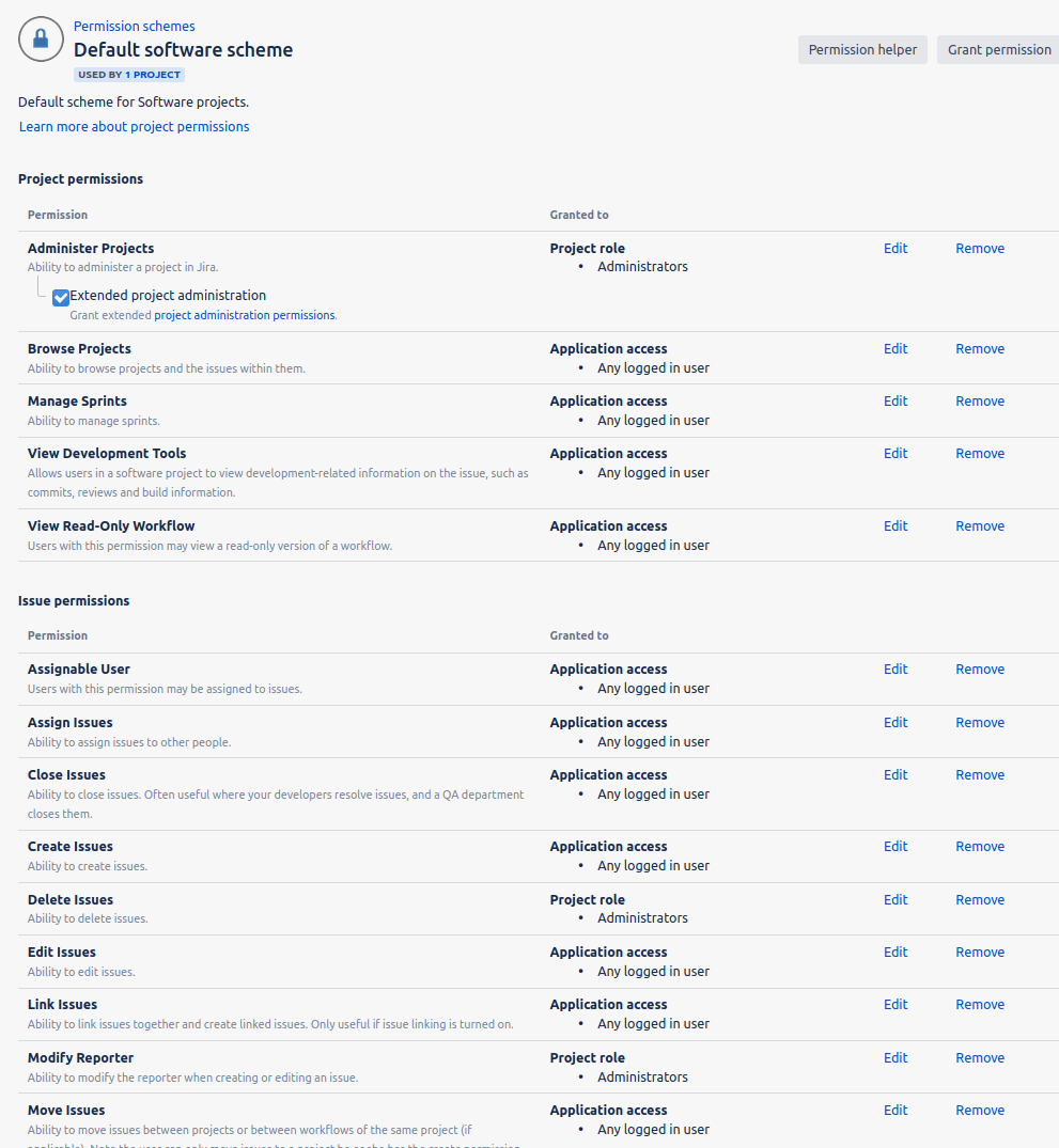 The answer is: everyone. Everyone with a Jira login, that is. Jira auto-creates a new permission scheme called Default software scheme to associate with the new project, and this scheme is wide open by default: