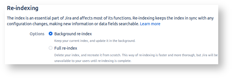JIRA's reindex screen will be familiar to JIRA admins: