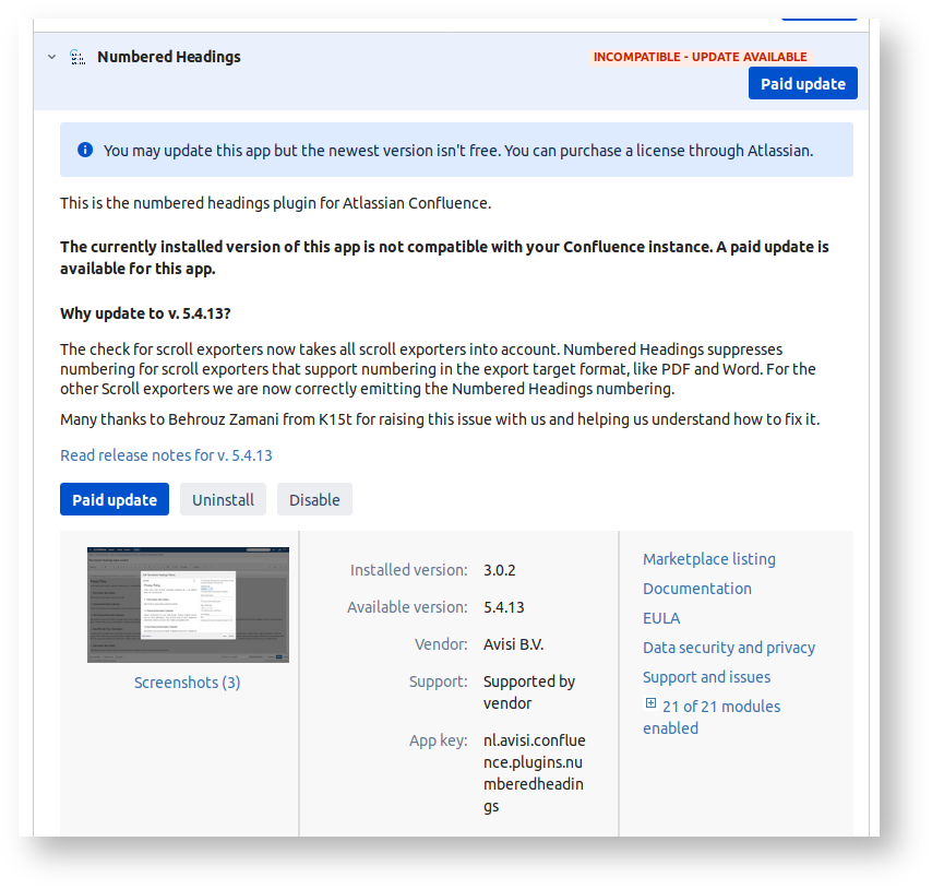Until recently it still worked, but not any more. As of Confluence 7.1 and later the UPM flags the old version as incompatible: