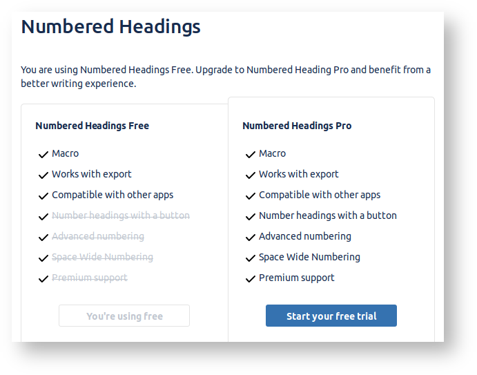 The Confluence Numbered Headings plugin is one of those plugins that was free for many years, then went commercial.