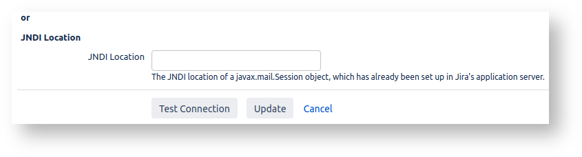 Using JNDI also avoids the two problems discussed above. With the JNDI method, your email credentials are kept a single file ( conf/server.xml ) on the server. not in the JIRA database. It is much easier to secure a single file than dozens of backups spread across multiple servers. Technically, you're configuring the appserver, Tomcat, with the password, not JIRA: JIRA just gets to use authenticated connections that Tomcat provides it.
