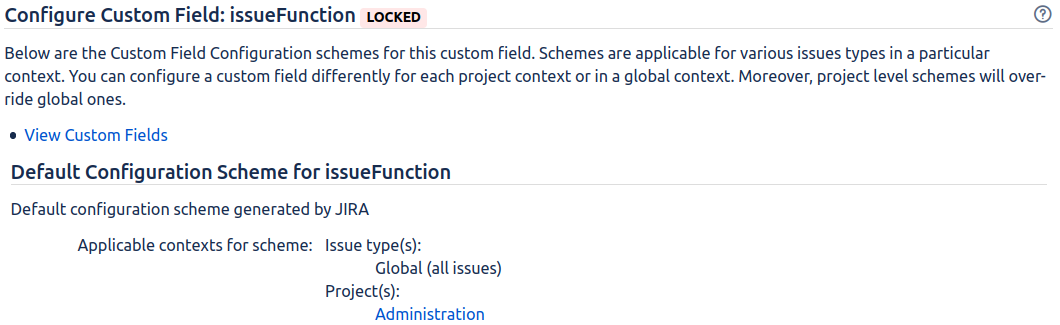 I recently encountered a Jira instance with ScriptRunner installed, where there issueFunction custom field provided by ScriptRunner was not available to all users. The error was |